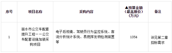 浙江省丽水市公交车配套提升工程公交车配套设施加装采购项目招标公告