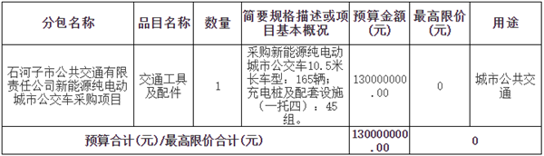 新疆石河子市公共交通有限责任公司纯电动城市公交车采购项目招标公告