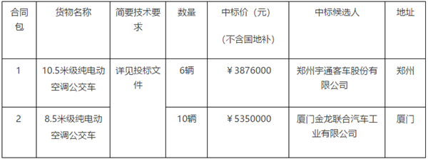 福建省福州经济技术开发区公共交通发展有限公司纯电动公交车中标公告