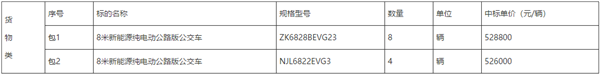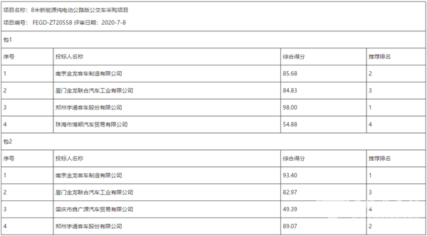 广东远东招标代理有限公司(以下简称“采购代理机构”)受湛江开发区公共交通有限公司的委托,在2020年7月8日就“8米新能源纯电动公路版公交车采购项目”(项目编号: FEGD-ZT20558)采用公开招标的采购方式进行采购,现就本次采购的中标结果公告如下: