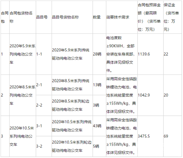 项目名称:2020年纯电动公交车采购项目