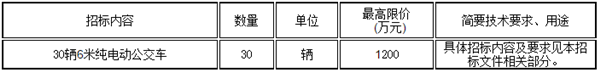 温州交运集团汽车服务有限公司30辆6米纯电动公交车,招标内容及要求如下:
