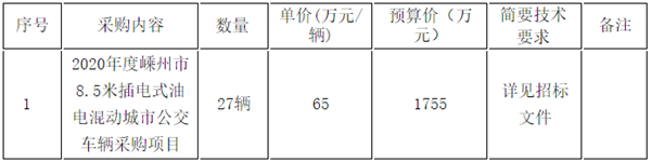 浙江省嵊州市公交公司2020年度嵊州市插电式油电混动城市公交车招标公告