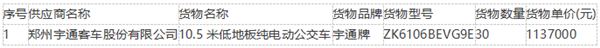 供应商名称:郑州宇通客车股份有限公司
