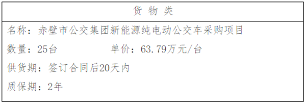 湖北省赤壁市公交集团新能源纯电动公交车采购项目中标结果公告