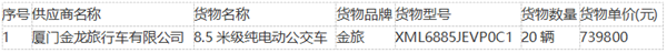 供应商名称:厦门金龙旅行车有限公司