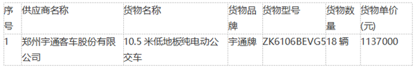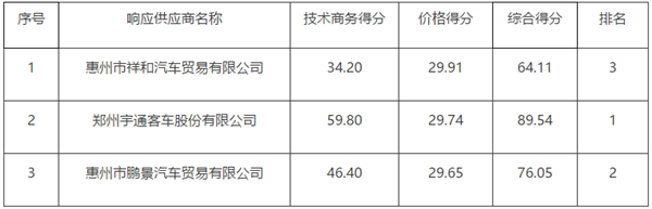 广东省惠州市东江公共汽车运输第五有限公司纯电动公交车采购中标公告