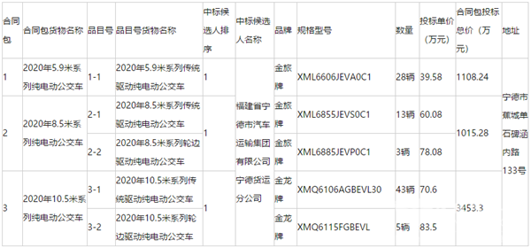 福建省宁德市公共交通有限公司2020年纯电动公交车采购项目招标公告