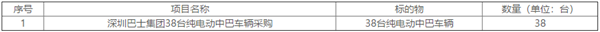 深圳巴士集团38台纯电动中巴车辆采购招标公告