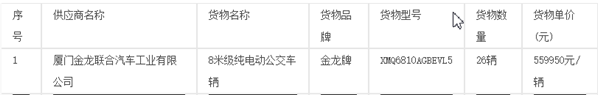 供应商名称:厦门金龙联合汽车工业有限公司