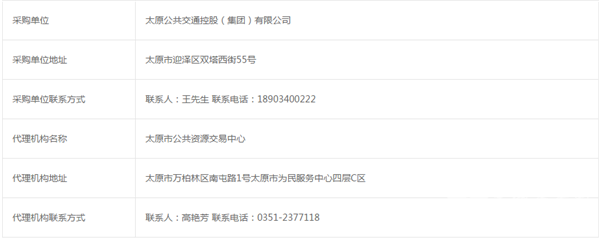 采购单位名称:太原公共交通控股(集团)有限公司