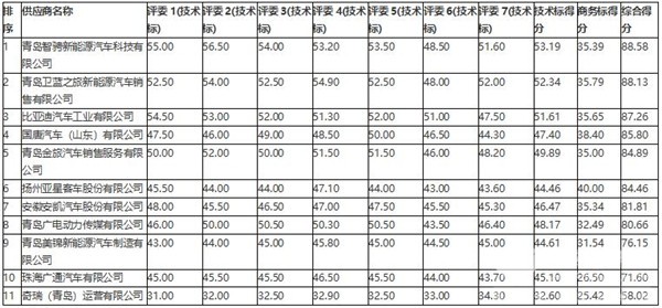 青岛市交通运输局2020年市区公交车辆更新项目中标公告