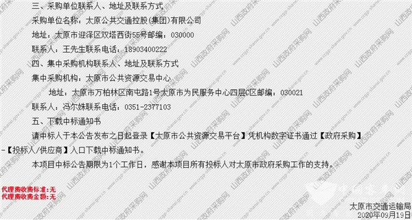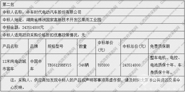 山西省太原市公交公司纯电动公交车公开招标采购中标公告