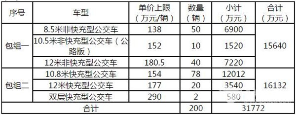 备注:以上投标限价不含国家新能源汽车推广补贴。