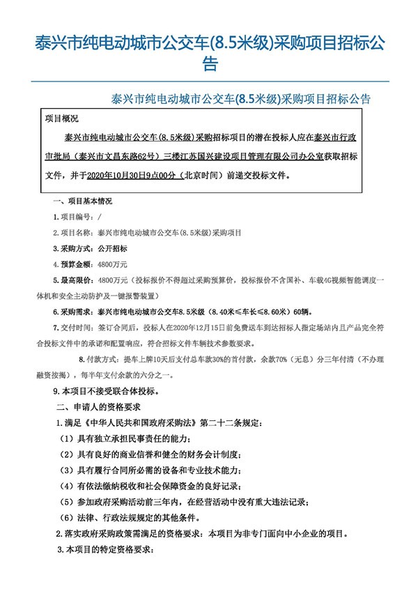 - 超1.1个亿!怀化公交集团发布136辆新能源公交车采购招标公告