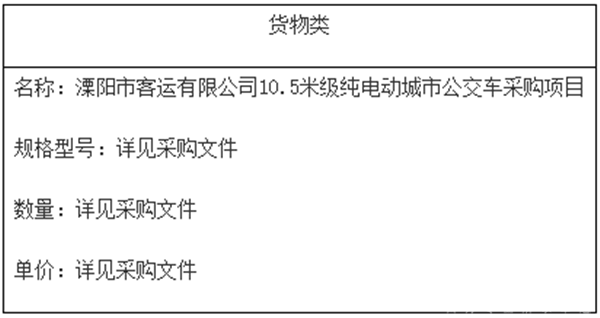 二、项目名称:溧阳市客运有限公司10.5米级纯电动城市公交车采购项目