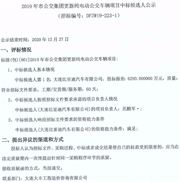 - 中标6.03个亿!大连公交集团发布1096辆新能源公交车采购中标公告