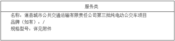 二、项目名称:道县城市公共交通运输有限责任公司第三批纯电动公交车项目