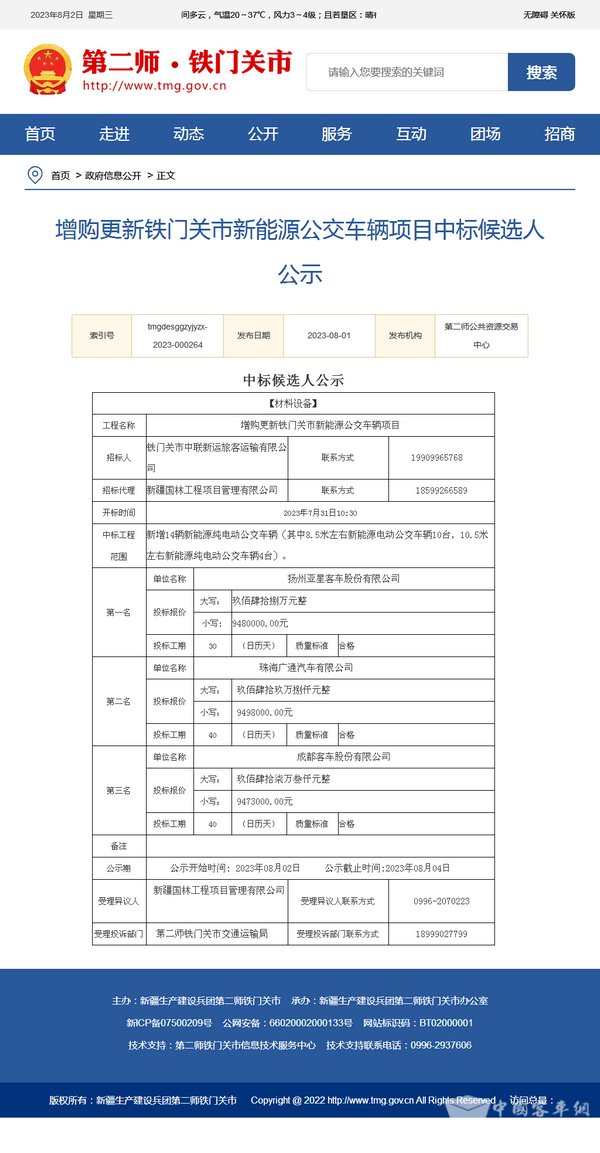 增购更新铁门关市新能源公交车辆项目中标候选人公示