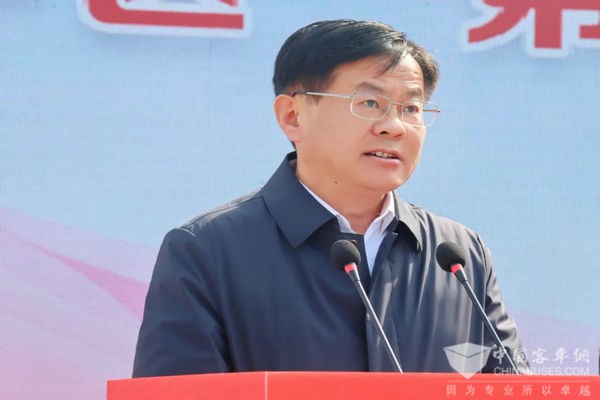 在启动仪式上,聂存明董事长指出,枣庄市交运投资集团坚持把抓好校车运营服务作为落实民生工程、彰显国企担当的头等大事。今天开通首批“红石榴号”校车,标志着“交运校车、好运平安”品牌内涵更加丰富,是校车运营的一件喜事,我们深感使命光荣、责任重大。我们在“红石榴号”校车内布置了民族团结文化宣传画、展示56个民族服饰等民族团结文化元素,通过开展多形式、富有民族特色的活动,讲好中华民族故事、挖掘红石榴内涵,让广大中小学生在耳濡目染中牢记石榴果的民族团结意蕴,在上下学出行中感受铸牢中华民族共同体意识,用共同理想信念凝聚“强国建设、民族复兴”的磅礴力量。