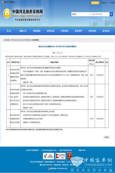 衡水市公共交通服务中心 2024年01至12月政府采购意向