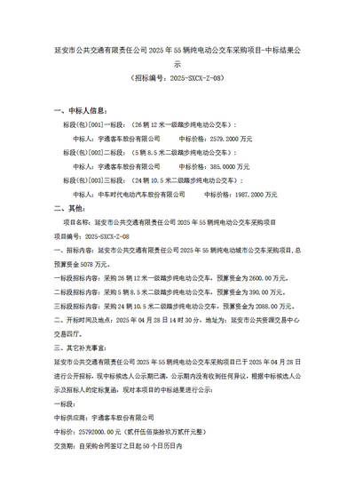 - 2025年青岛市主城区新能源公交车辆更新购置项目(一)中标公告