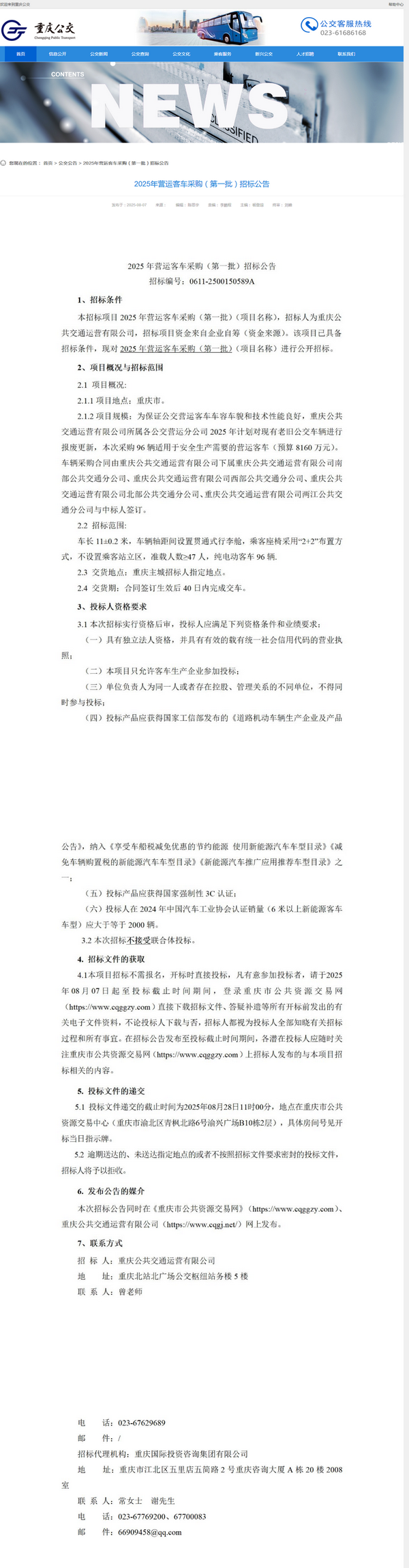 - 2025年青岛市主城区新能源公交车辆更新购置项目(三)中标公告
