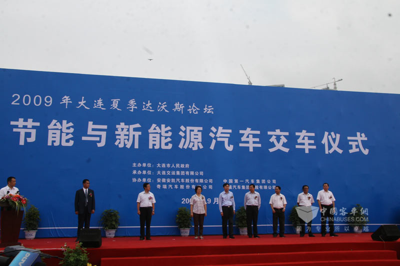 2009年9月5日,大连市人民政府“十城千辆”工程2009年大连夏季达沃斯论坛节能与新能源车辆示范工程在大连市星海广场举行了隆重的交车仪式。科技部高新司副司长张志宏、大连市政府副市长曲晓飞、大连市有关部门、生产单位、运营单位、中国XINGKONG.COM等多家媒体记者见证了本次盛会,共同检阅了我国节能与新能源产业的最新成果。