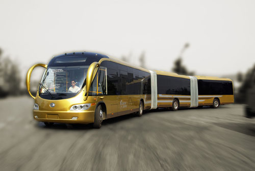 宇通市场部负责人表示,快速公交车被视为城市一道亮丽的风景线,宇通不仅对其外观设计要求严格求精求新,细节配置上体现人文关怀,还要不断致力于开发更多节能减排产品。在此次挑战赛上,除了金质产品创造金牌价值的"黄金子弹头"