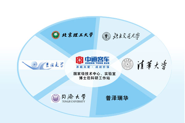 新能源客车是新兴产业,很多技术在行业里边都还是空白,需要攻克大量的难关,中通客车以“产学研”为依托,联合清华大学、北京理工大学等国内知名高校,在混合动力、清洁燃料以及零排放纯电动等新能源客车产品研发上注入重资,从资本到人力均设立企业内部的绿色通道,在新能源客车研发关键技术领域取得重大突破,获得二十多项专利。同时,发挥自身研发优势,构建科学的技术研发创新体系,50多名专业技术人员潜心研究,组成了一支拥有扎实的技术应用基础,掌握核心技术的新能源客车研发团队。