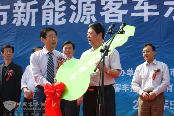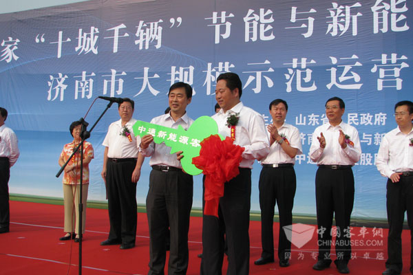 2010年4月21日,山东省政府在济南组织召开了山东省加快推广新能源客车工作座谈会。会上举行了中通客车公司与济南公交总公司、山东交运集团、聊城公交集团、聊城交运集团等公交、客运企业2010年度新能源客车购买协议签字仪式。中通客车公司总经理时洪功与上述企业负责人分别代表各自企业在协议上签字。