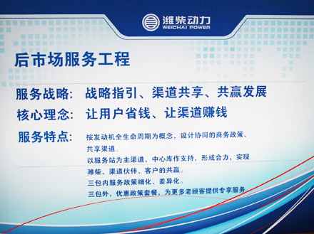 2011年,在复杂的市场竞争中,潍柴始终坚持以产品为根本,以渠道和服务为抓手,始终保持市场竞争的优势。在关注渠道建设的情况下,不断巩固和战略合作伙伴的关系,并更加倾注于为用户提供能创造更大价值的产品。潍柴节油发动机已经成福田欧曼公路节油版重卡最大亮点,而在陕重汽商务年会的新品发布上,潍柴发动机也成为一大卖点。【详细】