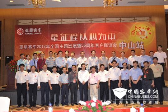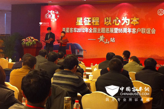 2012年3月8日,“星征程 以心为本”——2012亚星客车全国重点区域主题巡展及客户会议首站活动在黄山脚下正式拉开序幕。目前已经走过黄山、中山、云南三个城市。亚星客车2012年重磅推出的YBL6110全承载系列、JS6106GHCJ天然气客车、JS6660XC校车等8款车型即将踏上巡展的征程,来自安徽、湖北、江西、江苏的160多位客户齐聚活动现场,共同见证亚星客车“星征程”的起航,为亚星的新征程助威。1981年,中国真正意义上的客车底盘就诞生在亚星,这一创举结束了中国长期用卡车底盘改装客车的历史,在中国汽车工业发展史上具有划时代的意义,亚星是当之无愧的中国客车行业的开路者。在“中国客车55周年”的这样一个时间节点里,在亚星面对更广阔发展空间的历史机遇里,亚星已经蓄势待发,在潍柴整个资源系统的助力下,亚星踏上了新的征程,将再次引领行业发展的脚步。