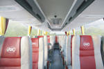 舒适新体验:宽敞明亮的乘坐空间;横向式空调出风口与伴读灯结合;真皮可调座椅带脚踏、横移功能。