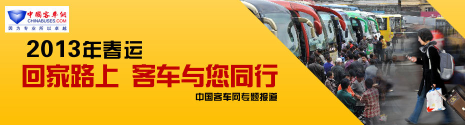 2013年1月26日,一年一度的春运正式启动,交通运输部预测,在为期40天的春运期间,全国道路客流将达到31亿人次,较去年增加9%。据统计,今年春运我国道路运输方面将投入84万辆大中型客车,高峰期投入运力可达86万辆,春运安全是一件关系社会民生的大事,备受各界关注。春运期间严峻的天气情况,长时间的车辆运行,都对车辆的安全性和稳定性提出了更高的要求。各客车厂家也都制定了完善的春运服务活动方案,确保春运安全、顺畅。
