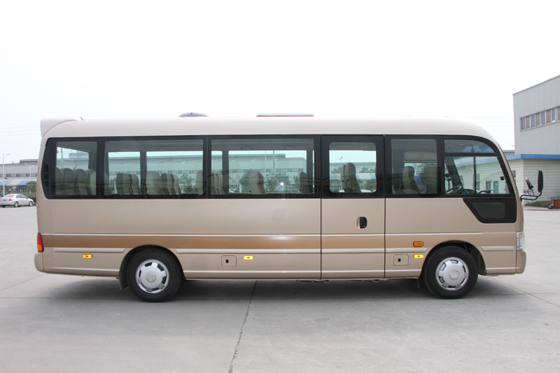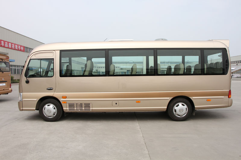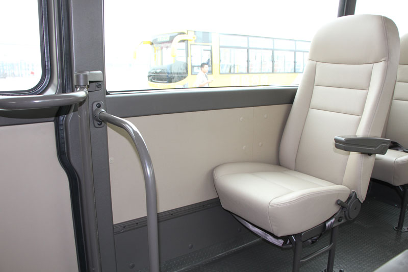 侧面:使用了铝制的侧围装饰条(全新开发);使用银色金属漆彰显豪华感;车身侧面使用 PVC材质的彩条,彰显豪华感 ;后面:使用带后示廓灯的尾翼(全新开发);整车更具豪华气质,同时提升了行车稳定性。后挡风玻璃带加热除霜,行车更安全。镀铬门把手;司机门内外两侧的把手进行了镀铬处理,轿车化的内饰感官。
