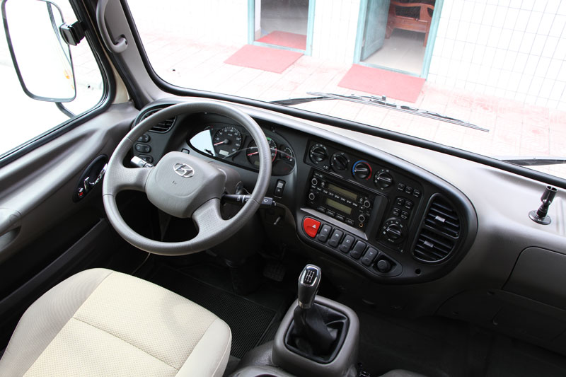 为了提高乘车舒适感及操作稳定性,前轮使用了独立悬架系统、后轮使用了加长板簧。提高乘坐舒适感,减少了驾驶疲劳· 降低了路面的激励震动及冲撞· 提高了车辆转向及超车并线时的稳定性;方向盘喇叭罩上的 ‘H’ 标志显示了豪华感;‘H’标志进行了镀铬处理,提升了方向盘的美观度。