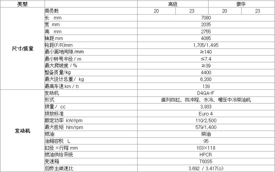 比丰田的动力性能优越;确保环保达标及满足后续排放升级要求;该发动机采用废气再循环(EGR)系统,用于降低废气中的氧化氮(NOX)的排出量,利用PMC贵金属催化降低CH 、CO排出量,废气排放达到欧IV标准,具备欧V排放法规的升级能力;制动性能上,前盘、后鼓式制动器,有效提高制动的稳定性。