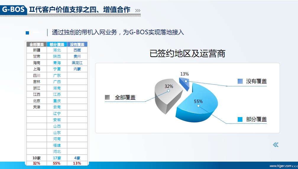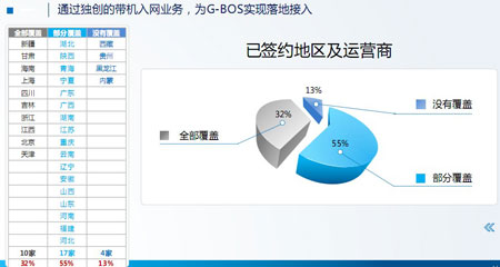 G-BOS带机入网业务。首开带机入网业务,与全国各地GPS运营商共建合作联盟,为客户提供落地入网接入服务。