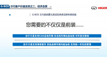 G-BOSⅡ代并不止于各项功能上的卓越,更兼具部标匹配,创领国家标准的智慧运营。