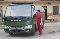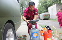 2015年6月7日35台15A受阅车辆进行首次保养河北大区服务专员王坤正在给保养车辆后桥加注齿轮油。
