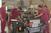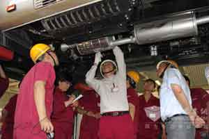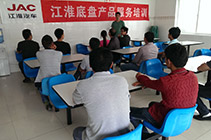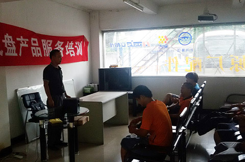 2015年3月18日下午底盘服务专员葛继满在济南第一团车辆维修车间给受阅驾驶员、修理工进行宝斯通底盘理论实物结合培训讲解工作,同时讲解制动、离合间隙如何调整以及在使用操作上注意事项。