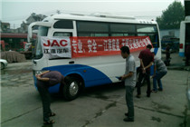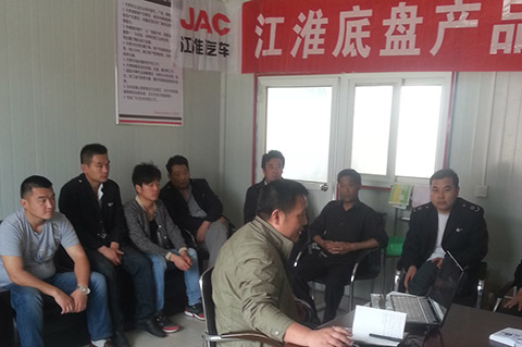2015年4月21日宝斯通底盘服务专员葛继满再次来到河北石家庄元氏县训练基地给受阅驾驶员、修理工进行第二次宝斯通底盘理论和实物相结合培训,因基地没有地沟,只能将车辆开到高达50公分高的洗车台上进行产品部件名称讲解。