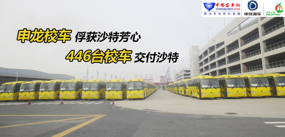 申龙校车446台校车交付沙特 在上海浦东新区海通新汽车码头广场,446台9米申龙校车整装待发,这批校车即将踏上新的航程前往沙特。此次申龙斩获的大批量出口订单为“清一色”9米系列校车,是客车业内为数不多的出口项目,同时也为申龙客车在沙特的市场的拓展打开了一道大门。据了解,沙特将学生安全列为国家重要工程,此次车辆的采购是一次全国范围内的,由沙特政府统一以招标的形式进行采购,沙特教育部及各大车辆运营商对于此次校车招标尤为重视,采购方从校车产品品质到售后服务、交货期等方面提出了高标准的要求,申龙客车通过努力有幸斩获了446台单一车型的校车订单,这是对申龙客车的企业实力给予了充分肯定……