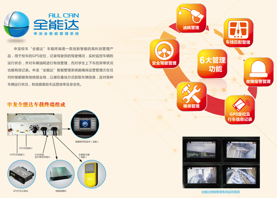 内饰简洁整齐:采用优质环保和带防火功能的高品质环保材料以及校车专用地板革
