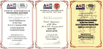 | 公司生产的SLK6122型旅游客车服务于党的“十七大”,客车以优良的性能受到首汽集团公司的好评,并授予“携手服务十七大,精诚合作谱新篇”的旌旗。 | SLK6126获得BAAV年度最佳客车造型奖 |