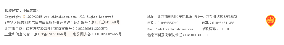 2015年5月11日,“2015北京国际道路运输、城市公交车辆及零部件展览会”在北京国家会议中心举行。本届展会以“新能源:客车发展的机遇与挑战”为主题,全面展示了产业链上、中、下游的最新技术和产品。[详细]
