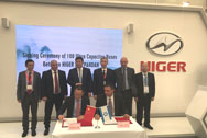 2017年10月20日,海格客车携3款明星产品首次参展比利时展。E12超级电容公交车、H9多用途中巴、H12大巴亮相极具江南特色的专属舞台,将“东方威尼斯”的风范体现得淋漓尽致!海格客车总经理黄书平和以色列Pandan董事Eran签订了100辆超级电容公交的采购协议,中国驻比利时大使曲星、商务参赞郭建军、金龙汽车集团董事长黄莼、总经理谢思瑜及其他部分中外客户见证签约....[更多]