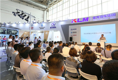 2018年5月28日,2018北京国际道路运输、城市公交车辆及零部件展览会(简称“2018道路运输车辆展”)在中国国际展览中心(新馆)举行。展览会正式开幕后,金龙客车隆重举行了以“未来路,加速度”为主题的三十周年品牌发布会,并推介了中国首款商用级无人驾驶巴士阿波龙和中国高端客车代表作龙威II代VC版。