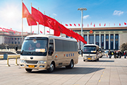 2016年3月全国两会期间,35辆宇通T7经过严苛的挑选,首次成为全国两会服务用车,并以“零故障”的优异表现被代表、委员们亲切地称之为“两会车代表”;